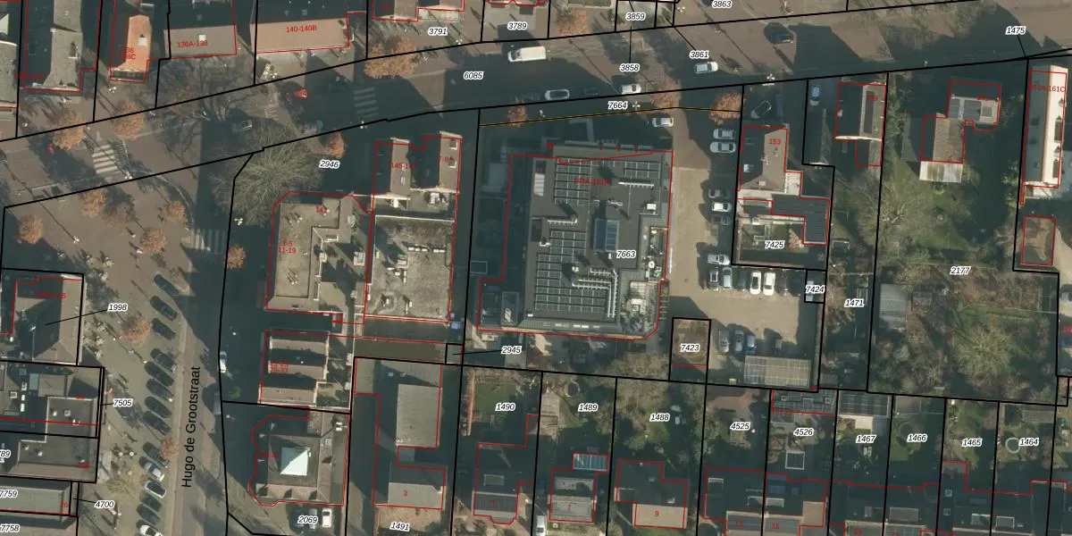Het perceel waarop Grotestraat 149-D staat heeft een oppervlakte van 2668 m². Dit is een zeer groot perceel. De perceeloppervlakte wordt geregistreerd door het Kadaster. Gedetailleerde informatie over de maten van dit perceel kunt u vinden in het rapport Kadastrale kaart met maatvoering van Grotestraat 149-D.