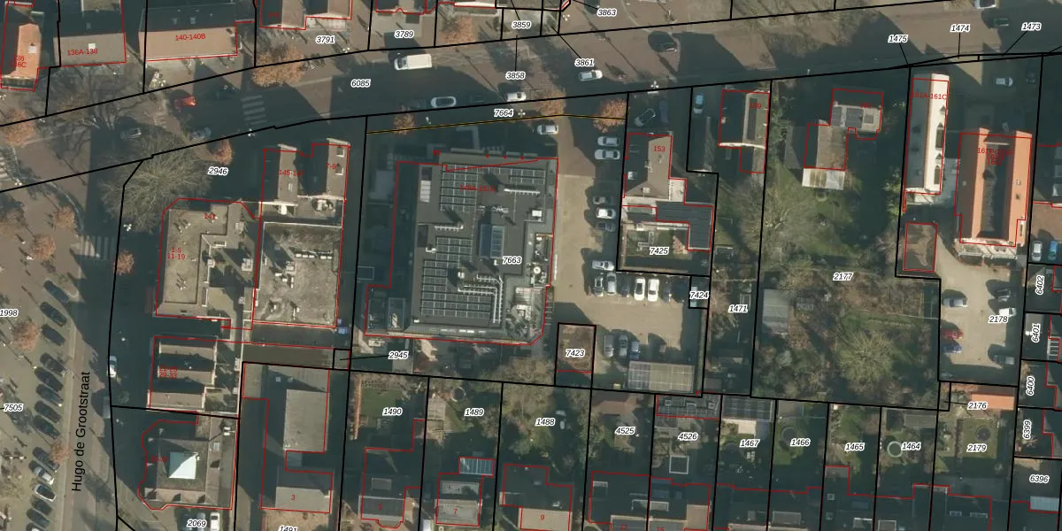 Het perceel waarop Grotestraat 149-K staat heeft een oppervlakte van 2668 m². Dit is een zeer groot perceel. De perceeloppervlakte wordt geregistreerd door het Kadaster. Gedetailleerde informatie over de maten van dit perceel kunt u vinden in het rapport Kadastrale kaart met maatvoering van Grotestraat 149-K.