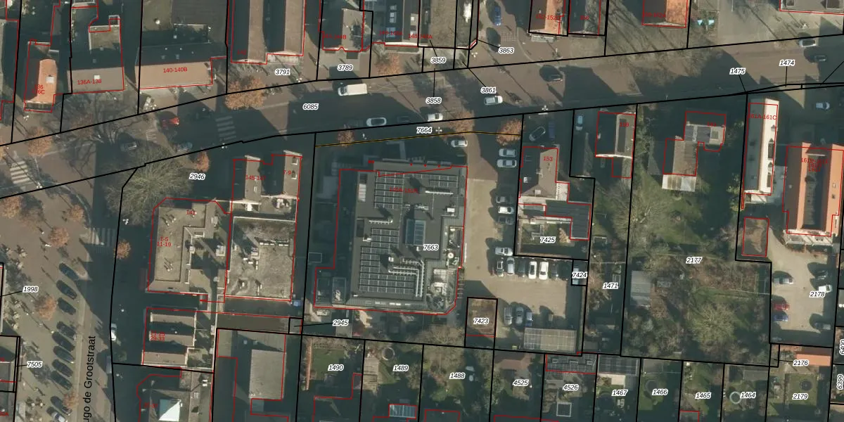 Het perceel waarop Grotestraat 151-K staat heeft een oppervlakte van 2668 m². Dit is een zeer groot perceel. De perceeloppervlakte wordt geregistreerd door het Kadaster. Gedetailleerde informatie over de maten van dit perceel kunt u vinden in het rapport Kadastrale kaart met maatvoering van Grotestraat 151-K.