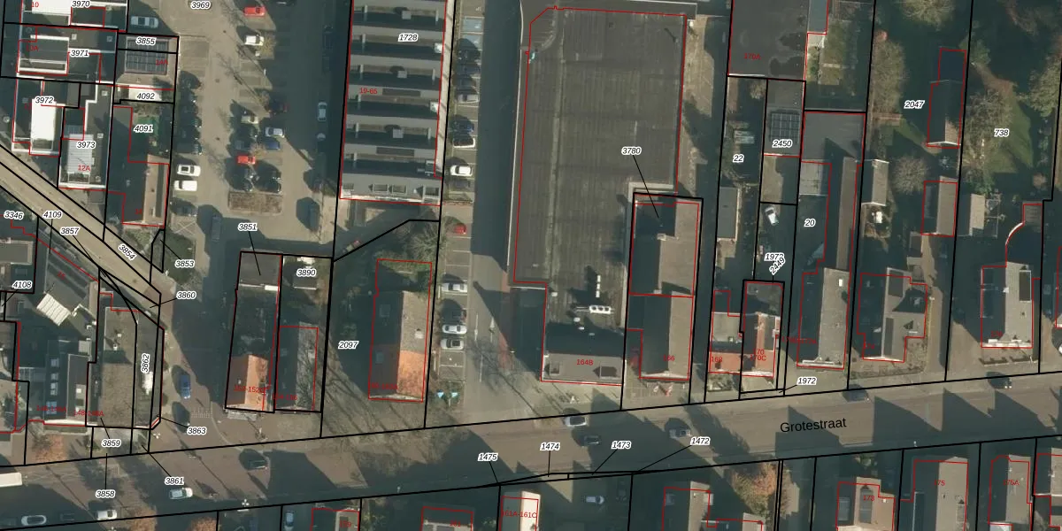 Grotestraat 164-B is gelegen op kadastraal perceel DNN00A3815. Deze kadastrale aanduiding is uniek en wordt gebruikt door het Kadaster om eigendomsrechten en andere zakelijke rechten vast te leggen. Het perceel maakt onderdeel uit van de kadastrale gemeente Drunen.