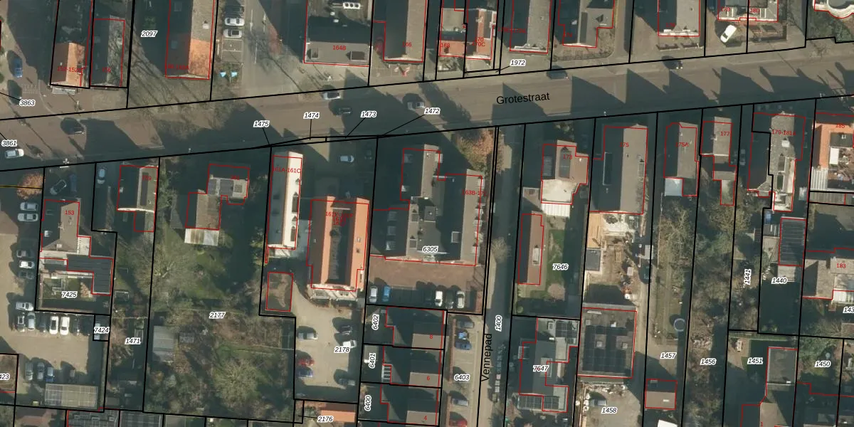 Het perceel waarop Grotestraat 169-B staat heeft een oppervlakte van 1144 m². Dit is een zeer groot perceel. De perceeloppervlakte wordt geregistreerd door het Kadaster. Gedetailleerde informatie over de maten van dit perceel kunt u vinden in het rapport Kadastrale kaart met maatvoering van Grotestraat 169-B.