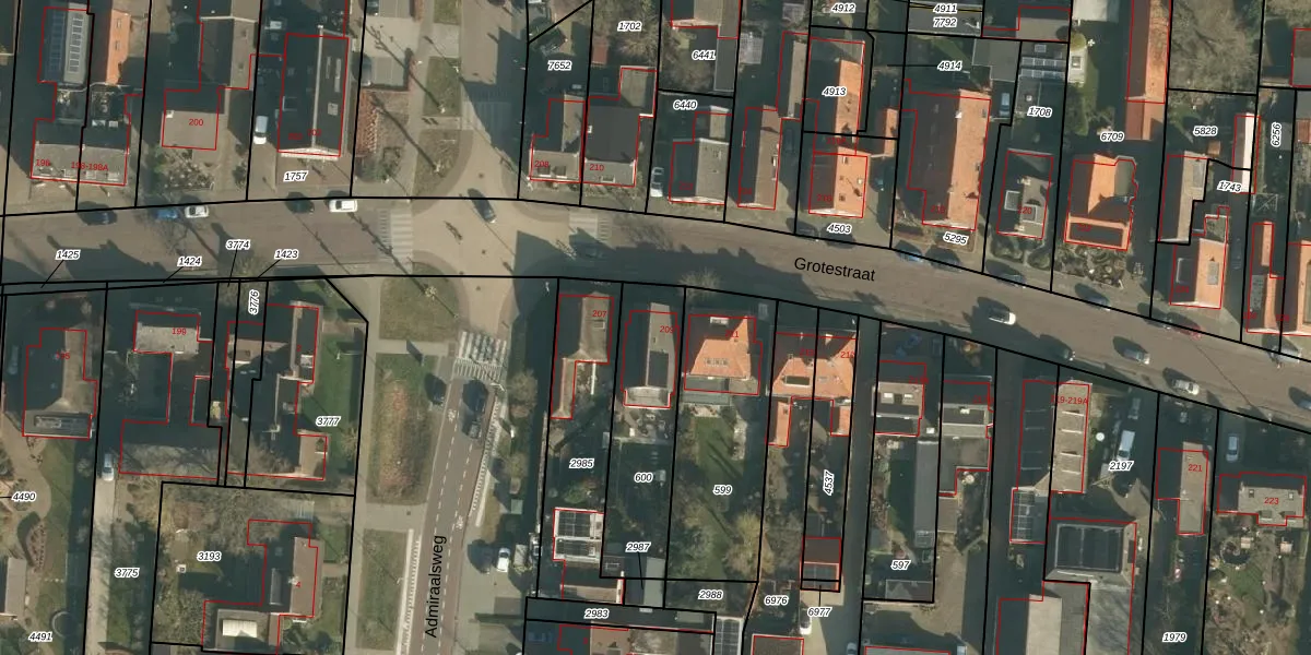 Het perceel waarop Grotestraat 209 staat heeft een oppervlakte van 440 m². Dit is een groot perceel. De perceeloppervlakte wordt geregistreerd door het Kadaster. Gedetailleerde informatie over de maten van dit perceel kunt u vinden in het rapport Kadastrale kaart met maatvoering van Grotestraat 209.