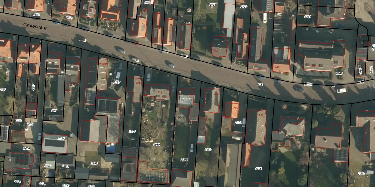 Het perceel waarop Grotestraat 225 staat heeft een oppervlakte van 974 m². Dit is een groot perceel. De perceeloppervlakte wordt geregistreerd door het Kadaster. Gedetailleerde informatie over de maten van dit perceel kunt u vinden in het rapport Kadastrale kaart met maatvoering van Grotestraat 225.