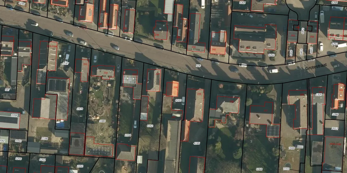 Het perceel waarop Grotestraat 229 staat heeft een oppervlakte van 960 m². Dit is een groot perceel. De perceeloppervlakte wordt geregistreerd door het Kadaster. Gedetailleerde informatie over de maten van dit perceel kunt u vinden in het rapport Kadastrale kaart met maatvoering van Grotestraat 229.