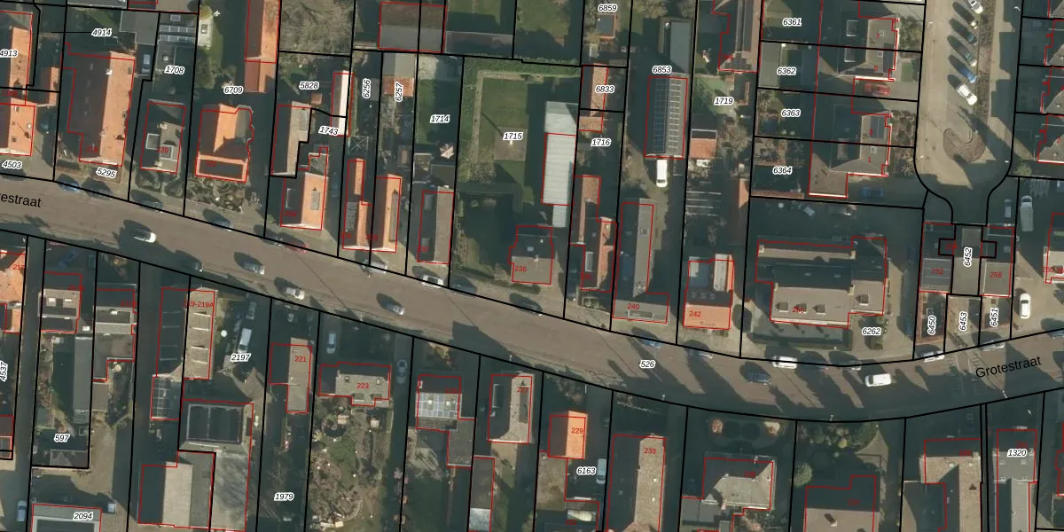 Het perceel waarop Grotestraat 236 staat heeft een oppervlakte van 1004 m². Dit is een zeer groot perceel. De perceeloppervlakte wordt geregistreerd door het Kadaster. Gedetailleerde informatie over de maten van dit perceel kunt u vinden in het rapport Kadastrale kaart met maatvoering van Grotestraat 236.