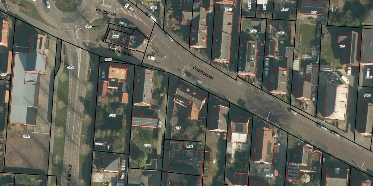 Het perceel waarop Grotestraat 5 staat heeft een oppervlakte van 695 m². Dit is een groot perceel. De perceeloppervlakte wordt geregistreerd door het Kadaster. Gedetailleerde informatie over de maten van dit perceel kunt u vinden in het rapport Kadastrale kaart met maatvoering van Grotestraat 5.