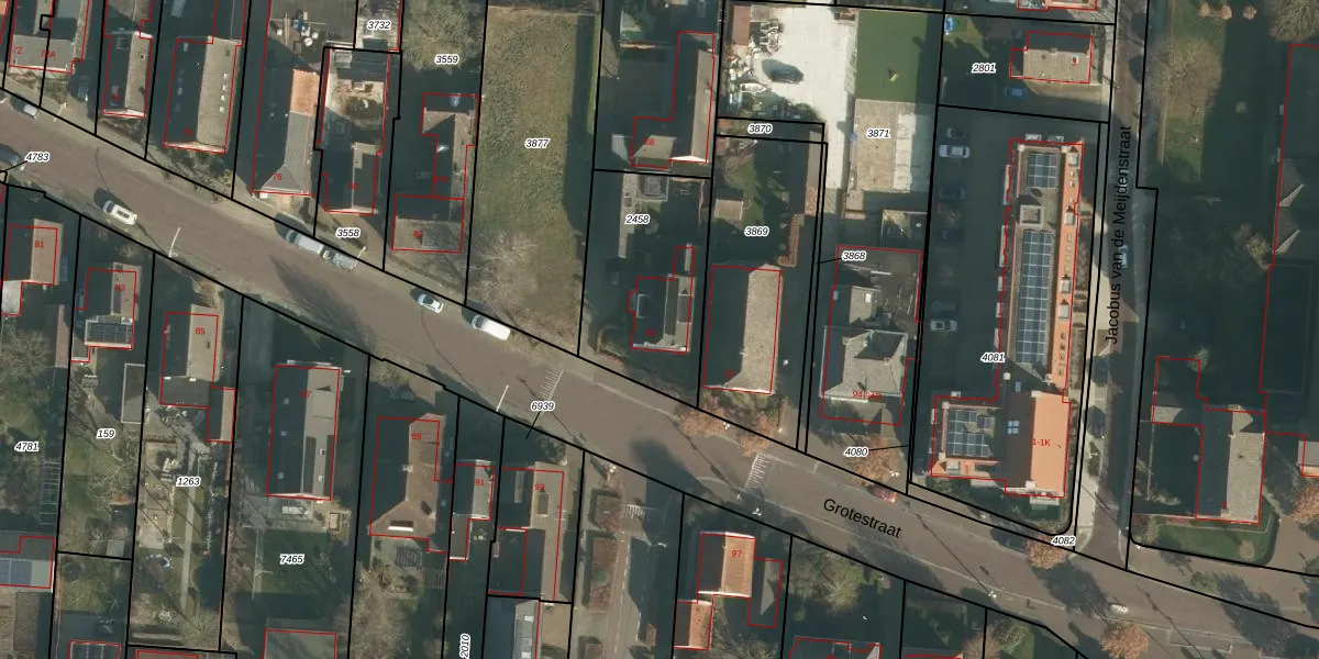 Het perceel waarop Grotestraat 90 staat heeft een oppervlakte van 589 m². Dit is een groot perceel. De perceeloppervlakte wordt geregistreerd door het Kadaster. Gedetailleerde informatie over de maten van dit perceel kunt u vinden in het rapport Kadastrale kaart met maatvoering van Grotestraat 90.