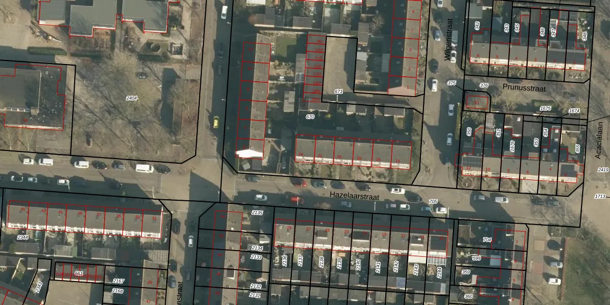 Het perceel waarop Hazelaarstraat 24 staat heeft een oppervlakte van 4290 m². Dit is een zeer groot perceel. De perceeloppervlakte wordt geregistreerd door het Kadaster. Gedetailleerde informatie over de maten van dit perceel kunt u vinden in het rapport Kadastrale kaart met maatvoering van Hazelaarstraat 24.