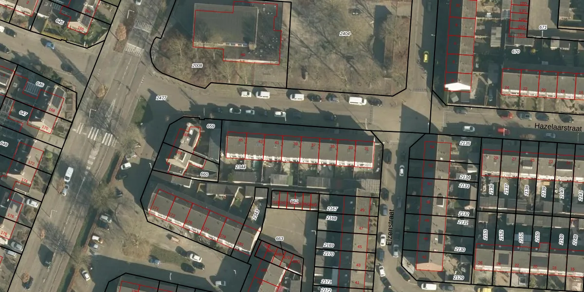 Het perceel waarop Hazelaarstraat 39 staat heeft een oppervlakte van 2105 m². Dit is een zeer groot perceel. De perceeloppervlakte wordt geregistreerd door het Kadaster. Gedetailleerde informatie over de maten van dit perceel kunt u vinden in het rapport Kadastrale kaart met maatvoering van Hazelaarstraat 39.