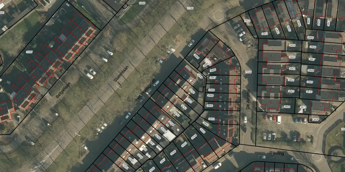 Gebruik de zoekbalk of klik op een perceel voor informatie over de adressen binnen dit perceel.