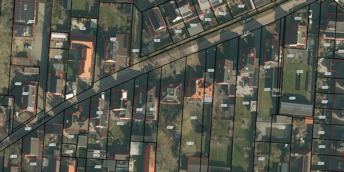 Hogeweg 7-B is gelegen op kadastraal perceel DNN00L5827. Deze kadastrale aanduiding is uniek en wordt gebruikt door het Kadaster om eigendomsrechten en andere zakelijke rechten vast te leggen. Het perceel maakt onderdeel uit van de kadastrale gemeente Drunen.