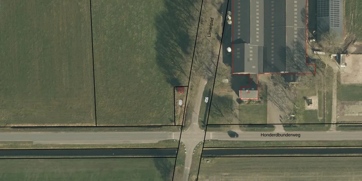Honderdbunderweg 25-T is gelegen op kadastraal perceel VMN00P570. Deze kadastrale aanduiding is uniek en wordt gebruikt door het Kadaster om eigendomsrechten en andere zakelijke rechten vast te leggen. Het perceel maakt onderdeel uit van de kadastrale gemeente Vlijmen.