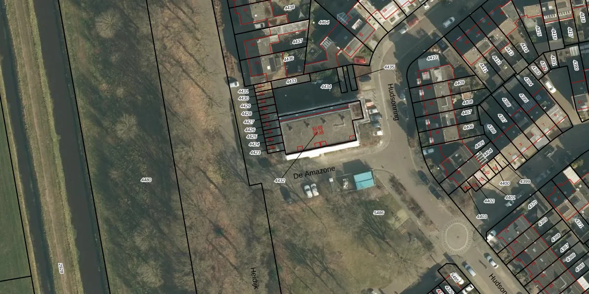 Het perceel waarop Hudsonring 62 staat heeft een oppervlakte van 343 m². Dit is een groot perceel. De perceeloppervlakte wordt geregistreerd door het Kadaster. Gedetailleerde informatie over de maten van dit perceel kunt u vinden in het rapport Kadastrale kaart met maatvoering van Hudsonring 62.