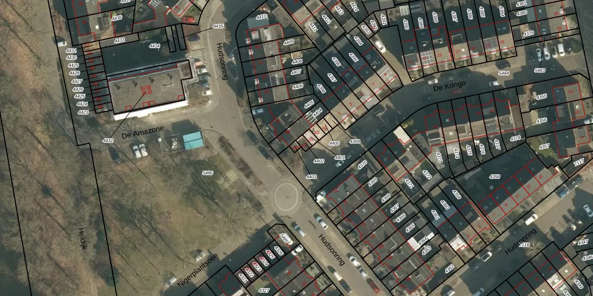 Gebruik de zoekbalk of klik op een perceel voor informatie over de adressen binnen dit perceel.