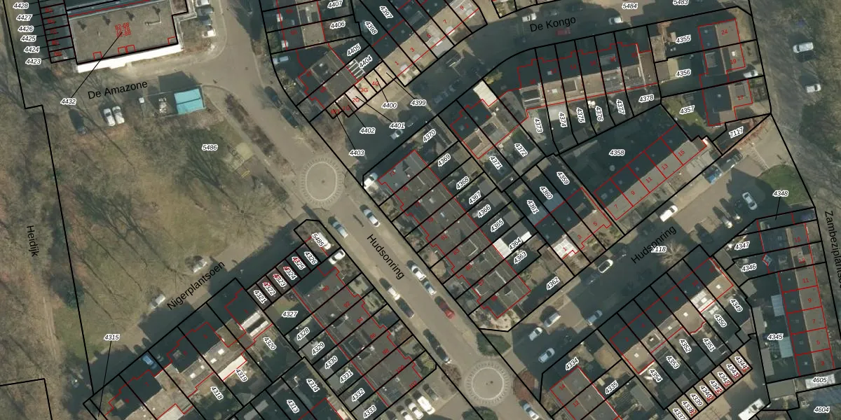 Gebruik de zoekbalk of klik op een perceel voor informatie over de adressen binnen dit perceel.