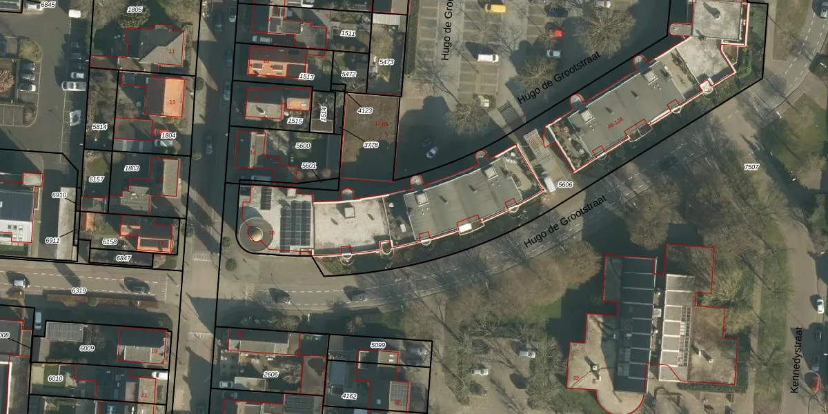 Het perceel waarop Hugo de Grootstraat 106 staat heeft een oppervlakte van 3500 m². Dit is een zeer groot perceel. De perceeloppervlakte wordt geregistreerd door het Kadaster. Gedetailleerde informatie over de maten van dit perceel kunt u vinden in het rapport Kadastrale kaart met maatvoering van Hugo de Grootstraat 106.