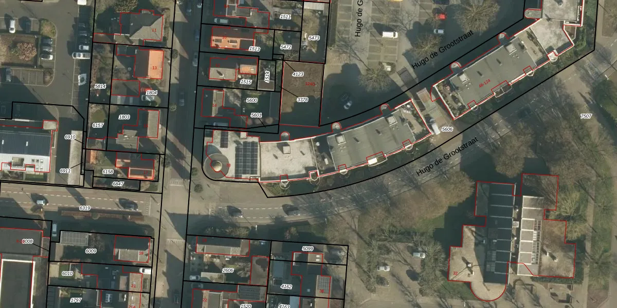 Het perceel waarop Hugo de Grootstraat 114 staat heeft een oppervlakte van 3500 m². Dit is een zeer groot perceel. De perceeloppervlakte wordt geregistreerd door het Kadaster. Gedetailleerde informatie over de maten van dit perceel kunt u vinden in het rapport Kadastrale kaart met maatvoering van Hugo de Grootstraat 114.