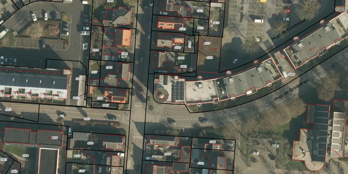 Het perceel waarop Hugo de Grootstraat 120 staat heeft een oppervlakte van 3500 m². Dit is een zeer groot perceel. De perceeloppervlakte wordt geregistreerd door het Kadaster. Gedetailleerde informatie over de maten van dit perceel kunt u vinden in het rapport Kadastrale kaart met maatvoering van Hugo de Grootstraat 120.