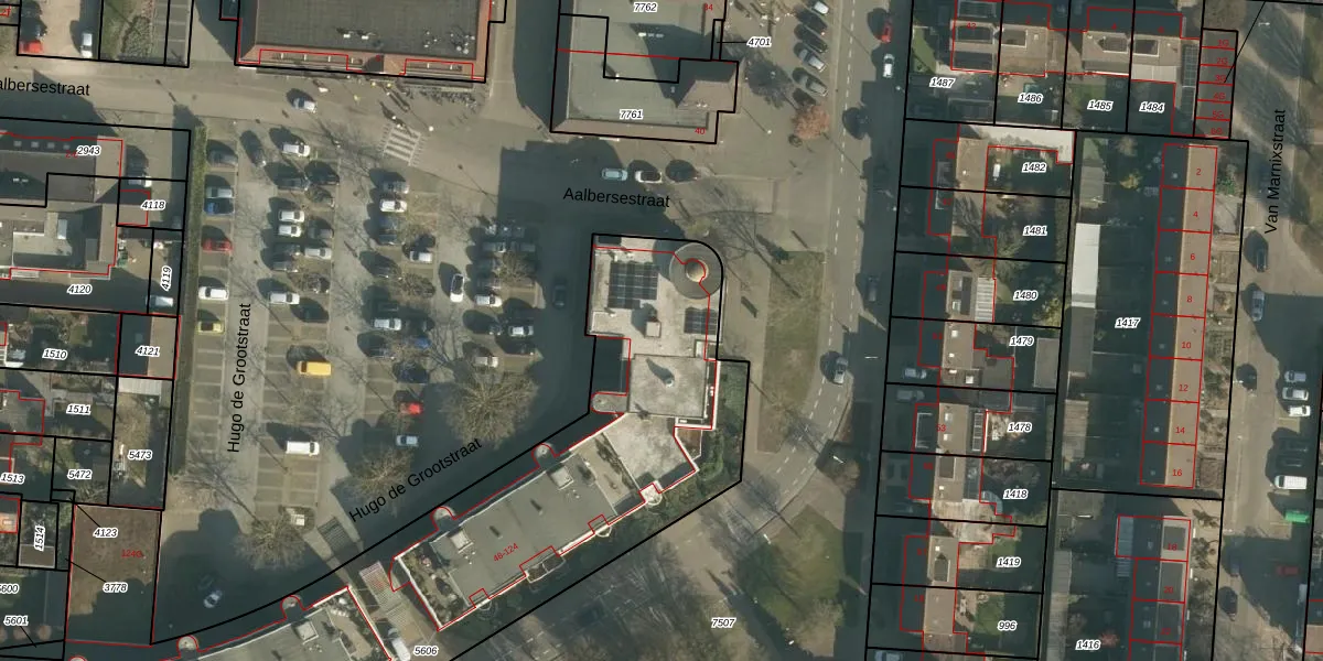 Het perceel waarop Hugo de Grootstraat 56 staat heeft een oppervlakte van 3500 m². Dit is een zeer groot perceel. De perceeloppervlakte wordt geregistreerd door het Kadaster. Gedetailleerde informatie over de maten van dit perceel kunt u vinden in het rapport Kadastrale kaart met maatvoering van Hugo de Grootstraat 56.