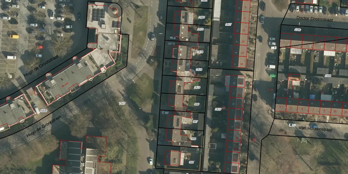 Gebruik de zoekbalk of klik op een perceel voor informatie over de adressen binnen dit perceel.
