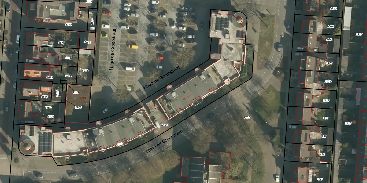 Het perceel waarop Hugo de Grootstraat 84 staat heeft een oppervlakte van 3500 m². Dit is een zeer groot perceel. De perceeloppervlakte wordt geregistreerd door het Kadaster. Gedetailleerde informatie over de maten van dit perceel kunt u vinden in het rapport Kadastrale kaart met maatvoering van Hugo de Grootstraat 84.