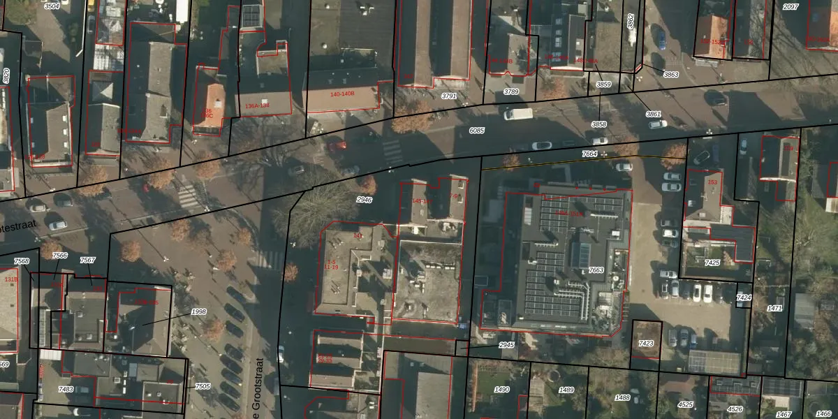 Het perceel waarop Hugo de Grootstraat 9 staat heeft een oppervlakte van 2163 m². Dit is een zeer groot perceel. De perceeloppervlakte wordt geregistreerd door het Kadaster. Gedetailleerde informatie over de maten van dit perceel kunt u vinden in het rapport Kadastrale kaart met maatvoering van Hugo de Grootstraat 9.