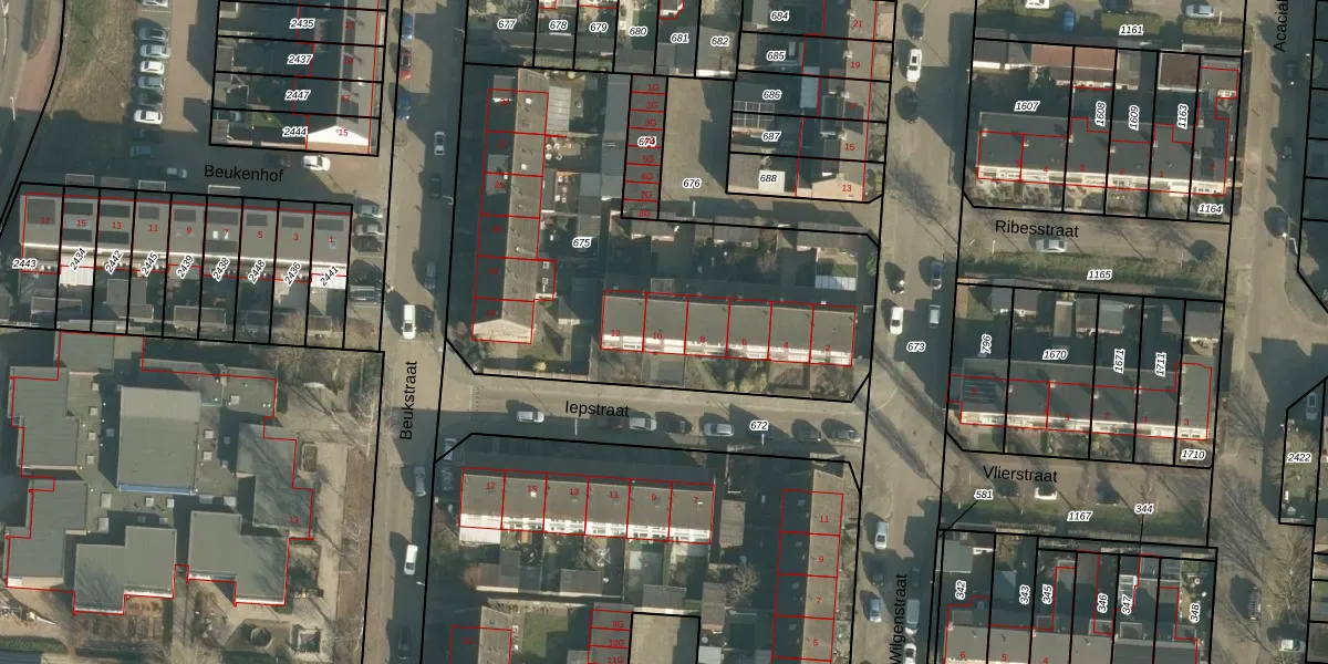 Het perceel waarop Iepstraat 10 staat heeft een oppervlakte van 2150 m². Dit is een zeer groot perceel. De perceeloppervlakte wordt geregistreerd door het Kadaster. Gedetailleerde informatie over de maten van dit perceel kunt u vinden in het rapport Kadastrale kaart met maatvoering van Iepstraat 10.