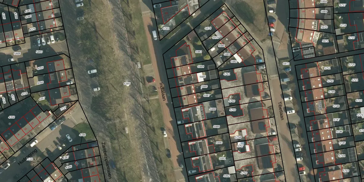 Indialaan 29 is gelegen op kadastraal perceel DNN00L5986. Deze kadastrale aanduiding is uniek en wordt gebruikt door het Kadaster om eigendomsrechten en andere zakelijke rechten vast te leggen. Het perceel maakt onderdeel uit van de kadastrale gemeente Drunen.