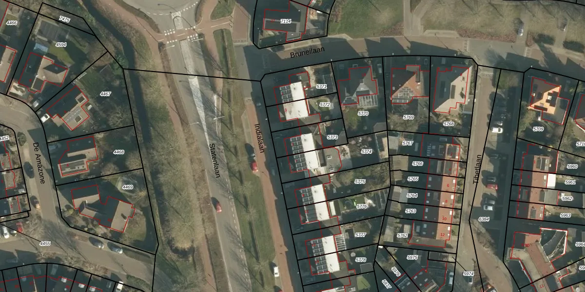 Het perceel waarop Indialaan 5 staat heeft een oppervlakte van 225 m². Dit is een middelgroot perceel. De perceeloppervlakte wordt geregistreerd door het Kadaster. Gedetailleerde informatie over de maten van dit perceel kunt u vinden in het rapport Kadastrale kaart met maatvoering van Indialaan 5.
