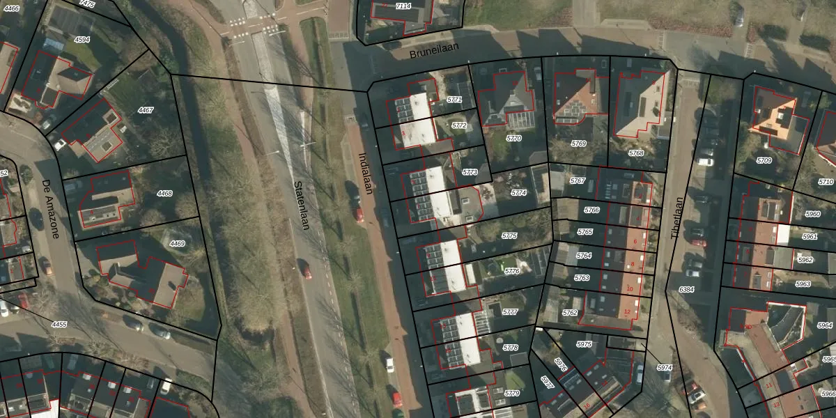 Indialaan 7 is gelegen op kadastraal perceel DNN00L5774. Deze kadastrale aanduiding is uniek en wordt gebruikt door het Kadaster om eigendomsrechten en andere zakelijke rechten vast te leggen. Het perceel maakt onderdeel uit van de kadastrale gemeente Drunen.