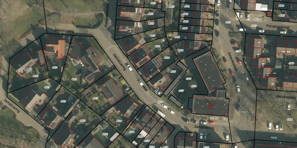 Gebruik de zoekbalk of klik op een perceel voor informatie over de adressen binnen dit perceel.