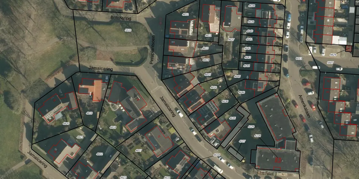 Gebruik de zoekbalk of klik op een perceel voor informatie over de adressen binnen dit perceel.