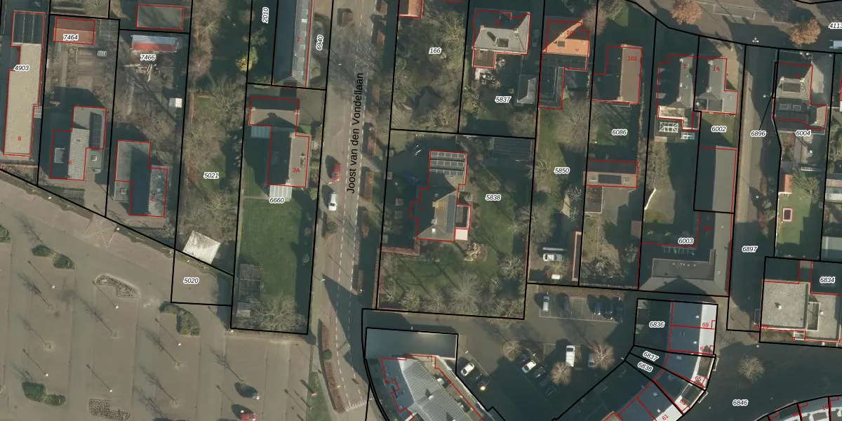 Joost van den Vondellaan 5 is gelegen op kadastraal perceel DNN00L5838. Deze kadastrale aanduiding is uniek en wordt gebruikt door het Kadaster om eigendomsrechten en andere zakelijke rechten vast te leggen. Het perceel maakt onderdeel uit van de kadastrale gemeente Drunen.