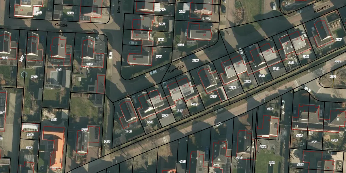 Kantelen 8 is gelegen op kadastraal perceel DNN00L7338. Deze kadastrale aanduiding is uniek en wordt gebruikt door het Kadaster om eigendomsrechten en andere zakelijke rechten vast te leggen. Het perceel maakt onderdeel uit van de kadastrale gemeente Drunen.