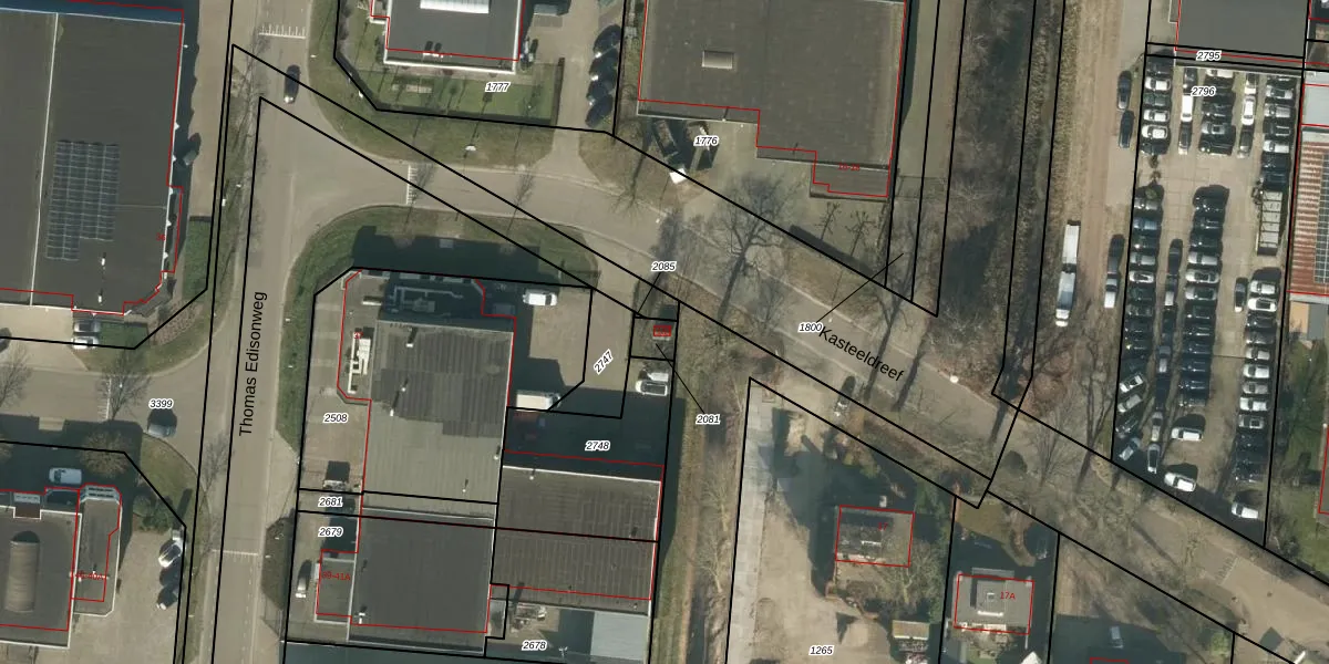 Kasteeldreef 18-T is gelegen op kadastraal perceel DNN00K2081. Deze kadastrale aanduiding is uniek en wordt gebruikt door het Kadaster om eigendomsrechten en andere zakelijke rechten vast te leggen. Het perceel maakt onderdeel uit van de kadastrale gemeente Drunen.