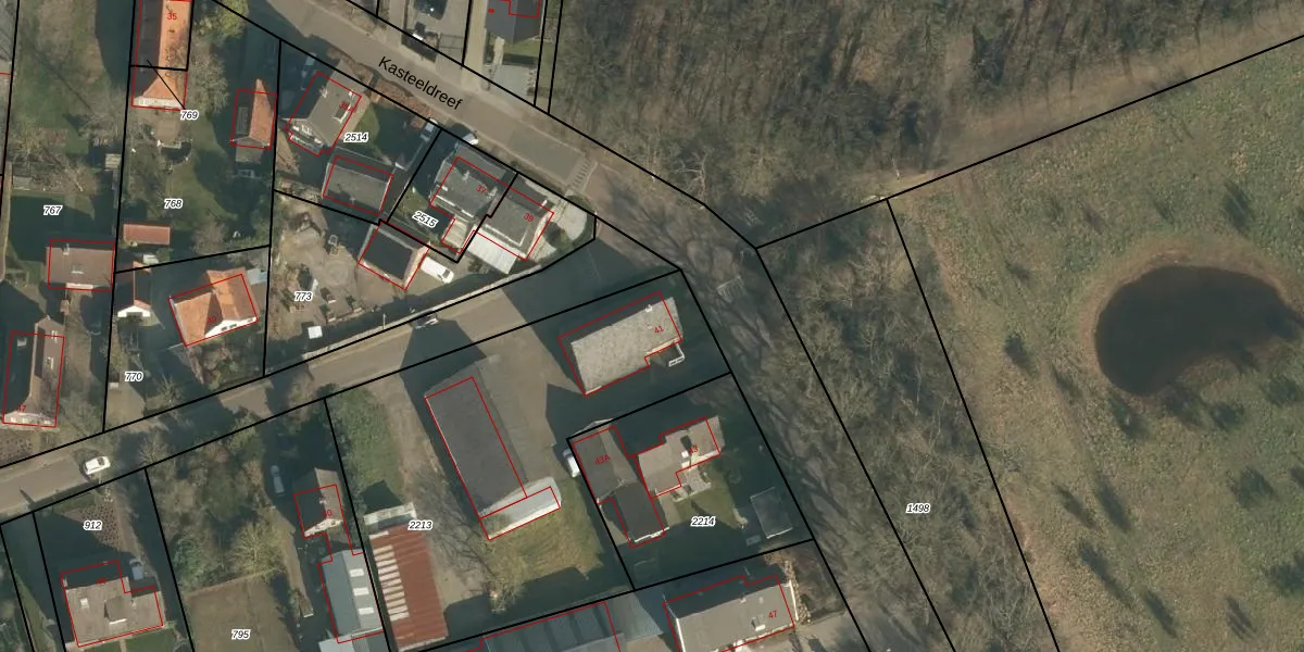 Kasteeldreef 41 is gelegen op kadastraal perceel DNN00K2213. Deze kadastrale aanduiding is uniek en wordt gebruikt door het Kadaster om eigendomsrechten en andere zakelijke rechten vast te leggen. Het perceel maakt onderdeel uit van de kadastrale gemeente Drunen.