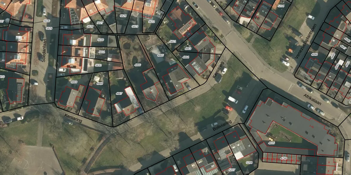 Het perceel waarop Keniaring 4 staat heeft een oppervlakte van 576 m². Dit is een groot perceel. De perceeloppervlakte wordt geregistreerd door het Kadaster. Gedetailleerde informatie over de maten van dit perceel kunt u vinden in het rapport Kadastrale kaart met maatvoering van Keniaring 4.