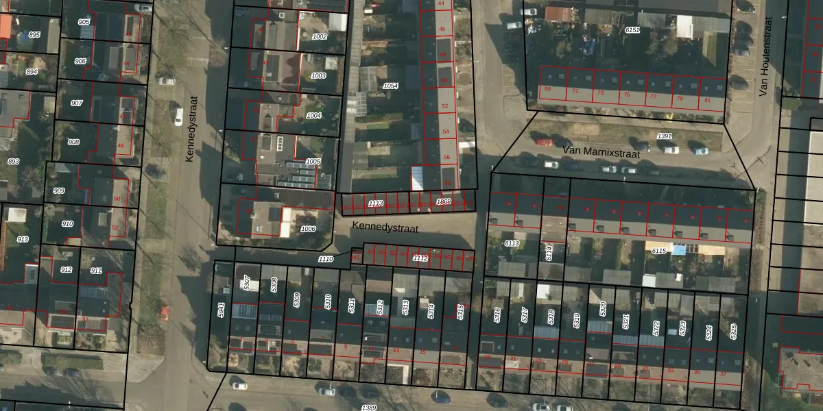 Het perceel waarop Kennedystraat 17-G staat heeft een oppervlakte van 90 m². Dit is een klein perceel. De perceeloppervlakte wordt geregistreerd door het Kadaster. Gedetailleerde informatie over de maten van dit perceel kunt u vinden in het rapport Kadastrale kaart met maatvoering van Kennedystraat 17-G.