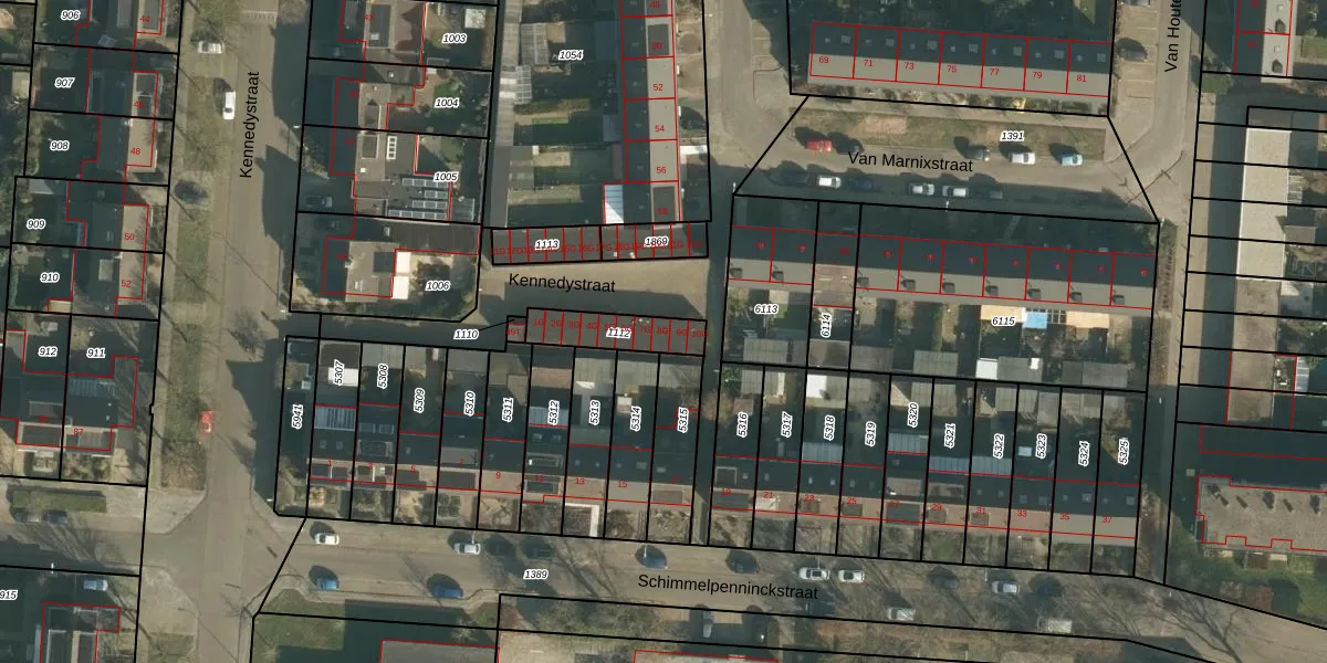 Het perceel waarop Kennedystraat 8-G staat heeft een oppervlakte van 148 m². Dit is een middelgroot perceel. De perceeloppervlakte wordt geregistreerd door het Kadaster. Gedetailleerde informatie over de maten van dit perceel kunt u vinden in het rapport Kadastrale kaart met maatvoering van Kennedystraat 8-G.