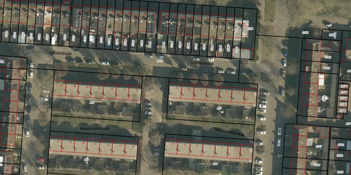 Het perceel waarop Léharstraat 13 staat heeft een oppervlakte van 1184 m². Dit is een zeer groot perceel. De perceeloppervlakte wordt geregistreerd door het Kadaster. Gedetailleerde informatie over de maten van dit perceel kunt u vinden in het rapport Kadastrale kaart met maatvoering van Léharstraat 13.