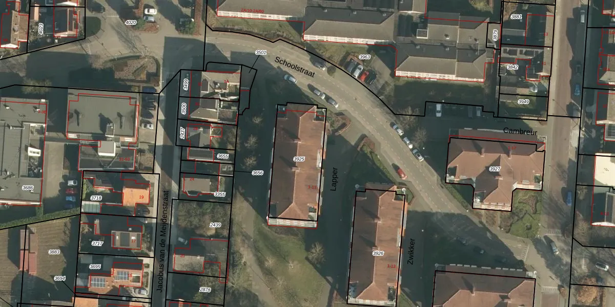 Het perceel waarop Lapper 9 staat heeft een oppervlakte van 595 m². Dit is een groot perceel. De perceeloppervlakte wordt geregistreerd door het Kadaster. Gedetailleerde informatie over de maten van dit perceel kunt u vinden in het rapport Kadastrale kaart met maatvoering van Lapper 9.