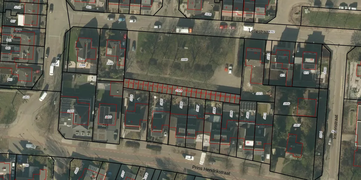 Het perceel waarop Leliestraat 12-G staat heeft een oppervlakte van 344 m². Dit is een groot perceel. De perceeloppervlakte wordt geregistreerd door het Kadaster. Gedetailleerde informatie over de maten van dit perceel kunt u vinden in het rapport Kadastrale kaart met maatvoering van Leliestraat 12-G.