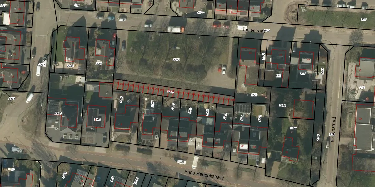 Het perceel waarop Leliestraat 15-G staat heeft een oppervlakte van 344 m². Dit is een groot perceel. De perceeloppervlakte wordt geregistreerd door het Kadaster. Gedetailleerde informatie over de maten van dit perceel kunt u vinden in het rapport Kadastrale kaart met maatvoering van Leliestraat 15-G.