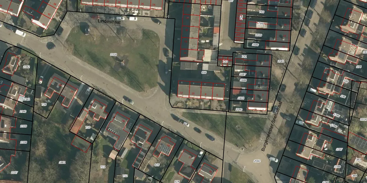 Het perceel waarop Lindestraat 12 staat heeft een oppervlakte van 1640 m². Dit is een zeer groot perceel. De perceeloppervlakte wordt geregistreerd door het Kadaster. Gedetailleerde informatie over de maten van dit perceel kunt u vinden in het rapport Kadastrale kaart met maatvoering van Lindestraat 12.