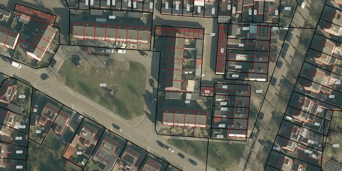 Het perceel waarop Lindestraat 14 staat heeft een oppervlakte van 1640 m². Dit is een zeer groot perceel. De perceeloppervlakte wordt geregistreerd door het Kadaster. Gedetailleerde informatie over de maten van dit perceel kunt u vinden in het rapport Kadastrale kaart met maatvoering van Lindestraat 14.