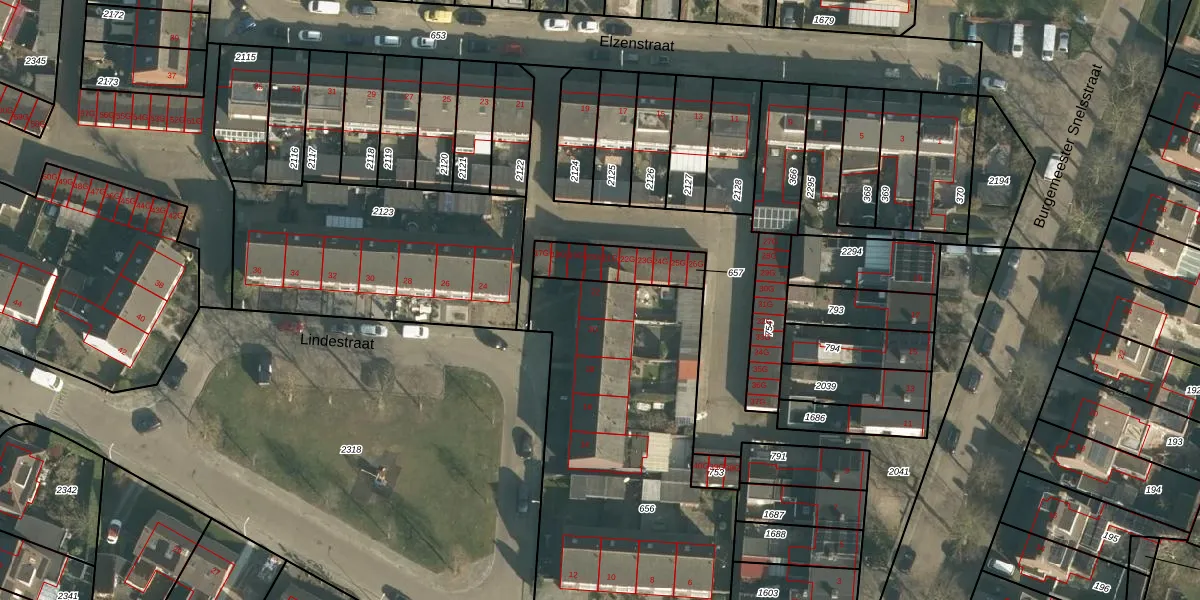 Het perceel waarop Lindestraat 22 staat heeft een oppervlakte van 1640 m². Dit is een zeer groot perceel. De perceeloppervlakte wordt geregistreerd door het Kadaster. Gedetailleerde informatie over de maten van dit perceel kunt u vinden in het rapport Kadastrale kaart met maatvoering van Lindestraat 22.