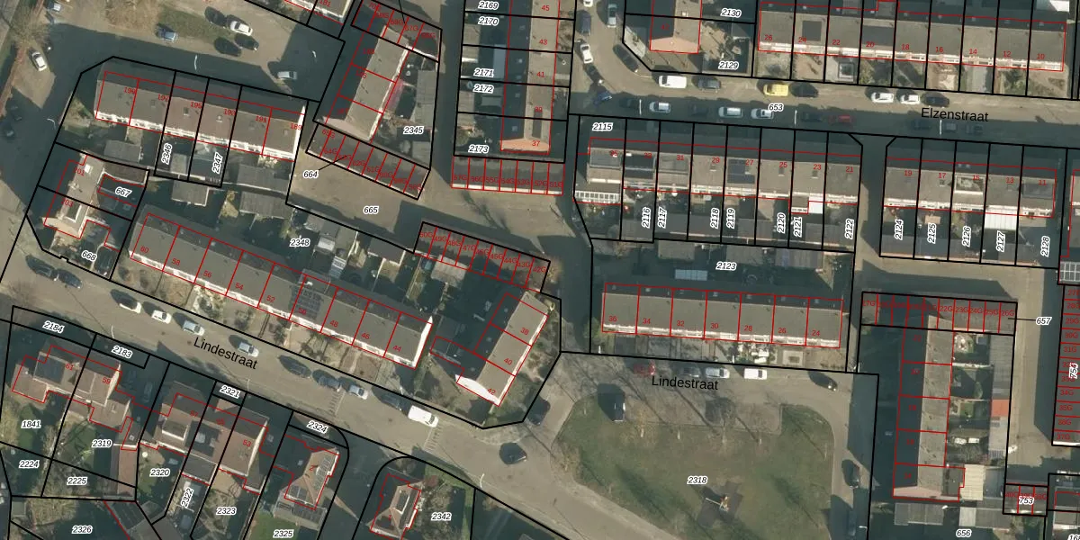 Het perceel waarop Lindestraat 42-G staat heeft een oppervlakte van 2740 m². Dit is een zeer groot perceel. De perceeloppervlakte wordt geregistreerd door het Kadaster. Gedetailleerde informatie over de maten van dit perceel kunt u vinden in het rapport Kadastrale kaart met maatvoering van Lindestraat 42-G.