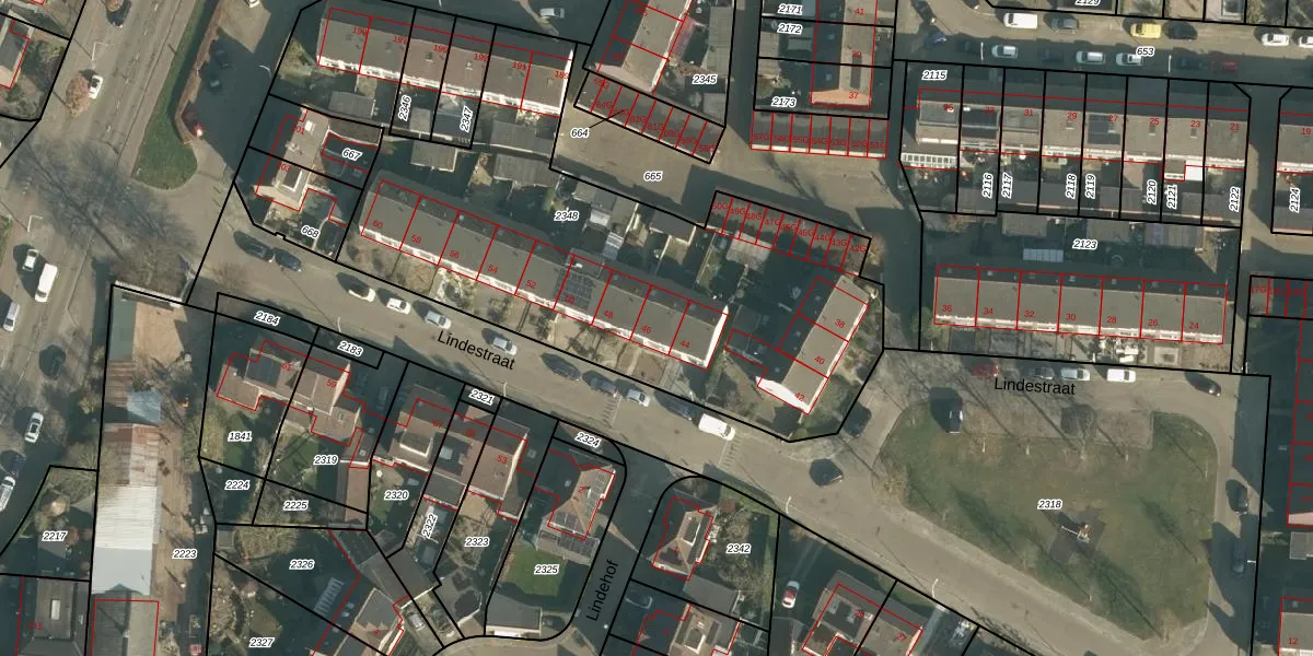 Het perceel waarop Lindestraat 46 staat heeft een oppervlakte van 2740 m². Dit is een zeer groot perceel. De perceeloppervlakte wordt geregistreerd door het Kadaster. Gedetailleerde informatie over de maten van dit perceel kunt u vinden in het rapport Kadastrale kaart met maatvoering van Lindestraat 46.