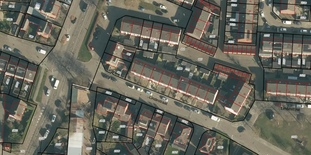 Het perceel waarop Lindestraat 56 staat heeft een oppervlakte van 2740 m². Dit is een zeer groot perceel. De perceeloppervlakte wordt geregistreerd door het Kadaster. Gedetailleerde informatie over de maten van dit perceel kunt u vinden in het rapport Kadastrale kaart met maatvoering van Lindestraat 56.