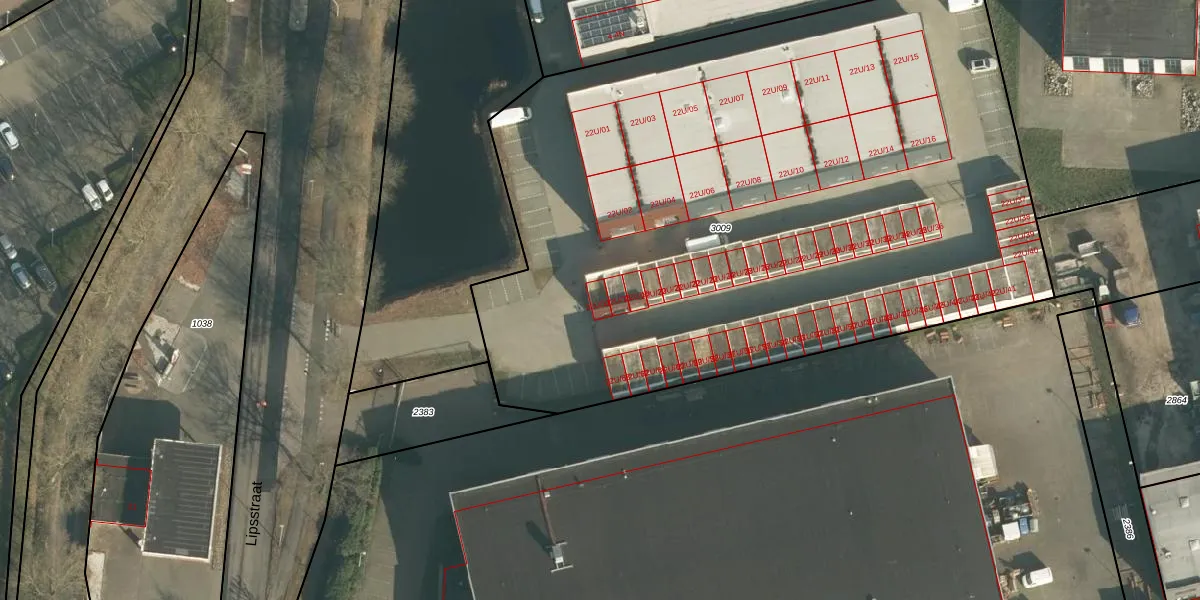 Het perceel waarop Lipsstraat 22-U-17 staat heeft een oppervlakte van 4865 m². Dit is een zeer groot perceel. De perceeloppervlakte wordt geregistreerd door het Kadaster. Gedetailleerde informatie over de maten van dit perceel kunt u vinden in het rapport Kadastrale kaart met maatvoering van Lipsstraat 22-U-17.